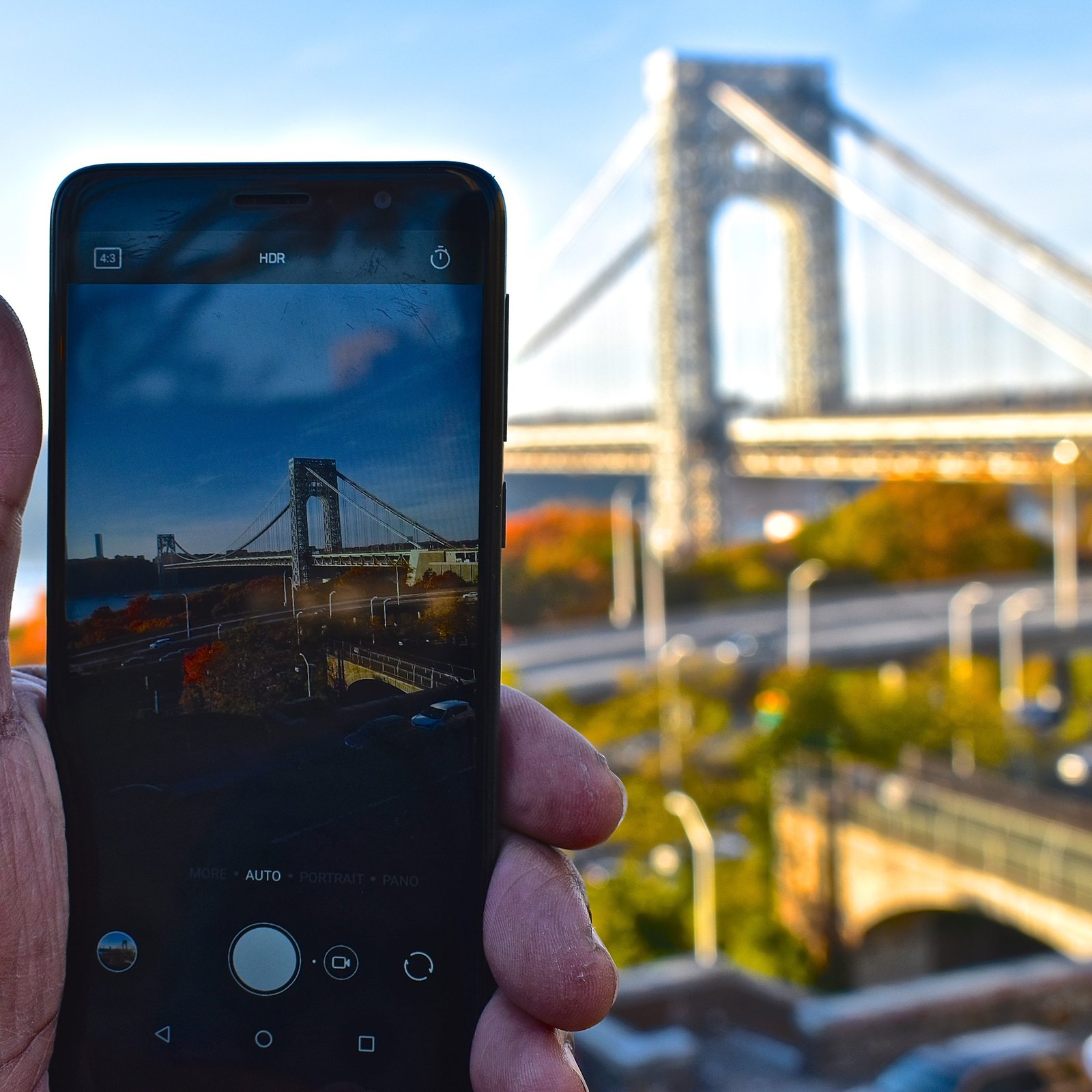 A picture of a picture of the George Washington Bridge in New York.